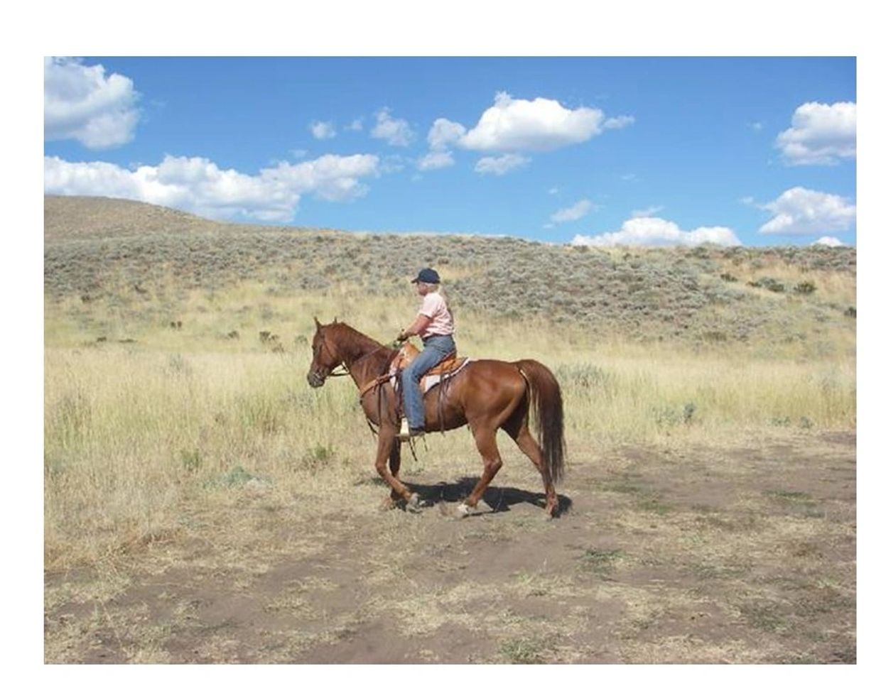 Julie Blincoe on a trail ride with her horse, DWA Sabsons Tiger.