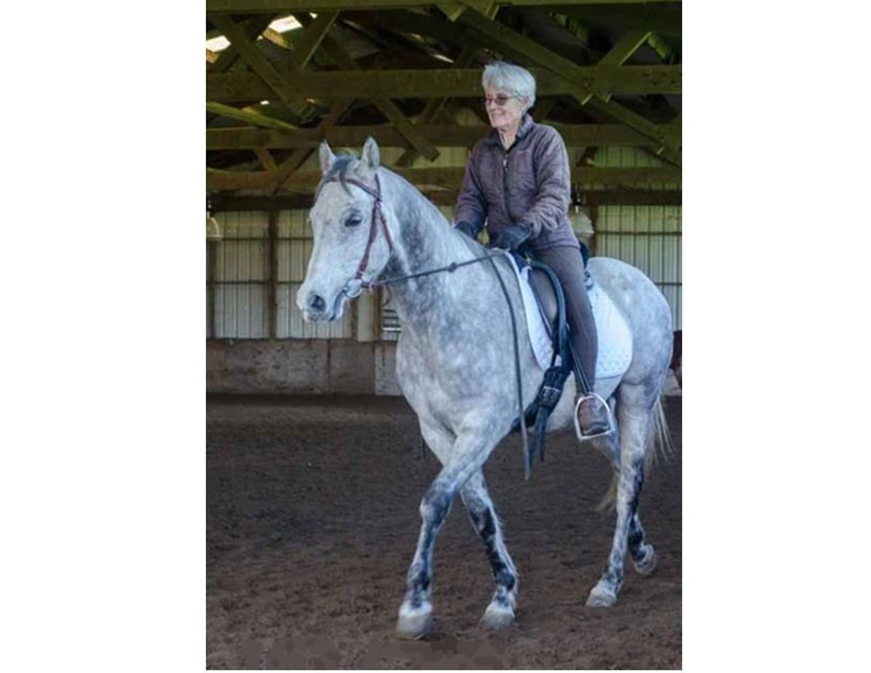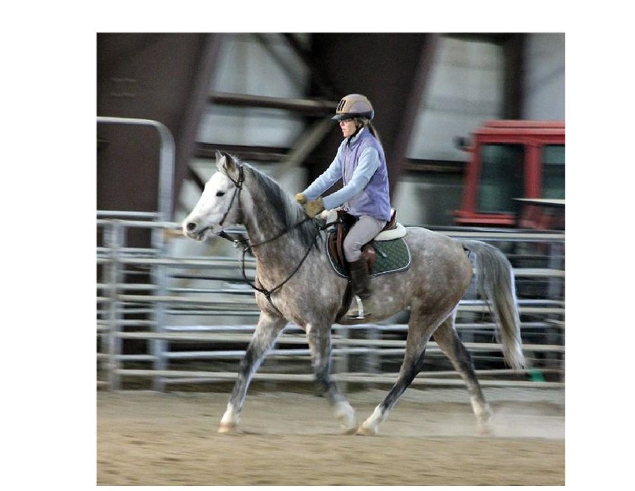 Noli Burges Frates riding Shabby Shiek (Louie) in an outdoor arena.