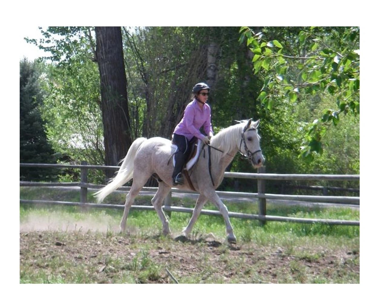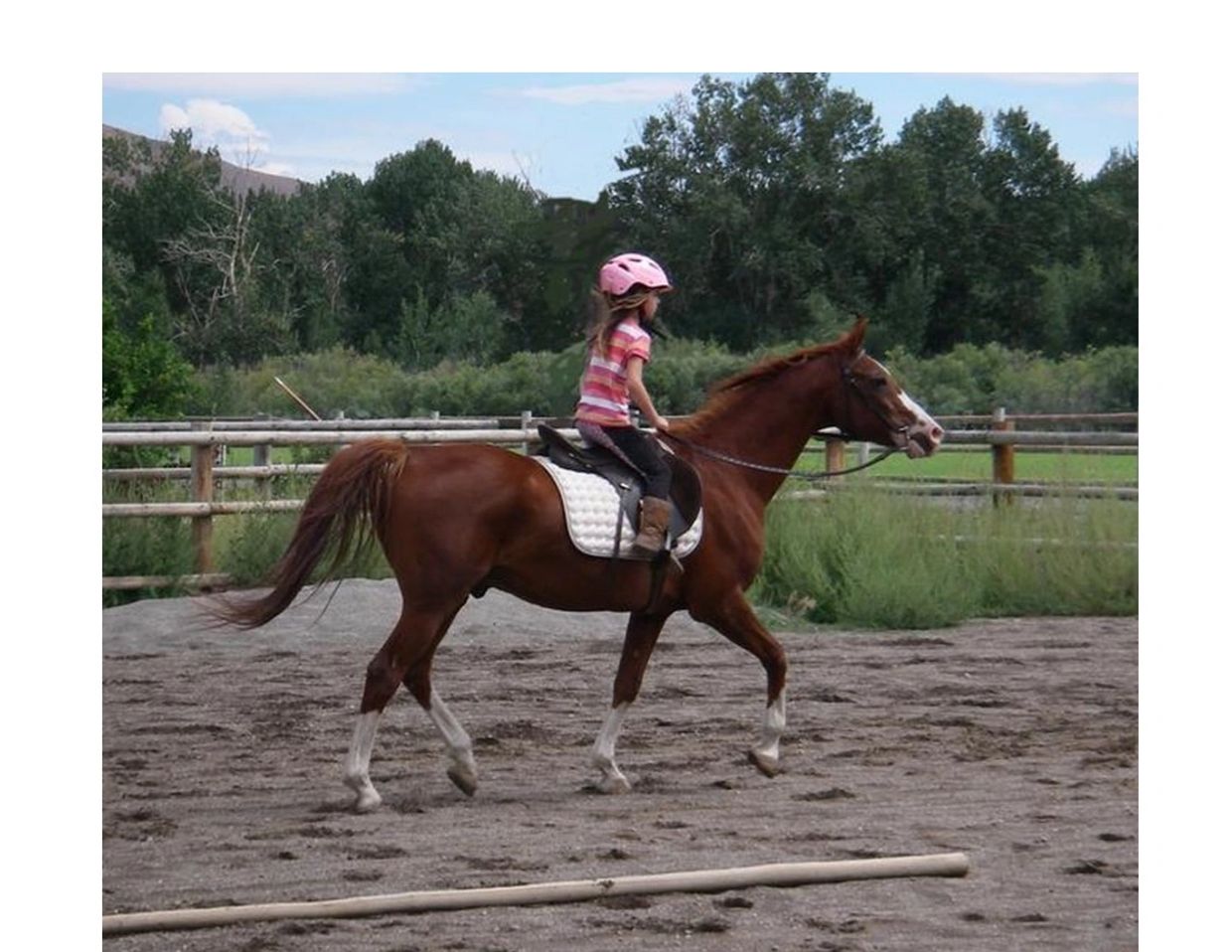Edie Frates, age 7, riding DWA Lancers , age 25, an ex-race horse who is enjoying being a family horse.
