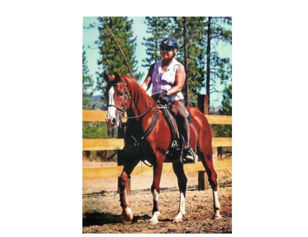 Debra Ray-Lantrip riding her horse, DWA Sabsons Shiek (Riley).